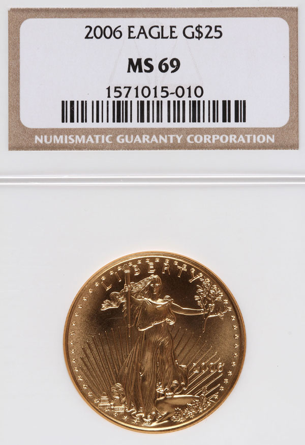 A 2006 AMERICAN GOLD EAGLE NGC MS69. $25 gold coin, .5 Troy oz.