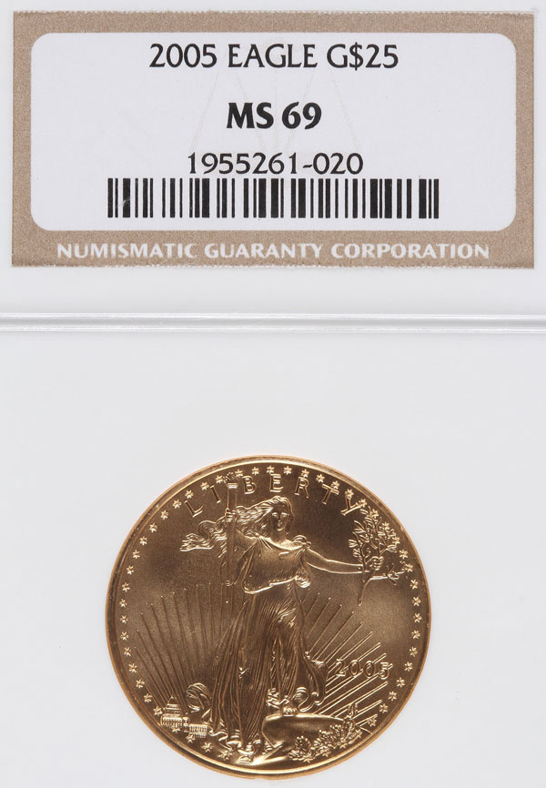 A 2005 AMERICAN GOLD EAGLE NGC MS69. $25 gold coin, .5 Troy oz.