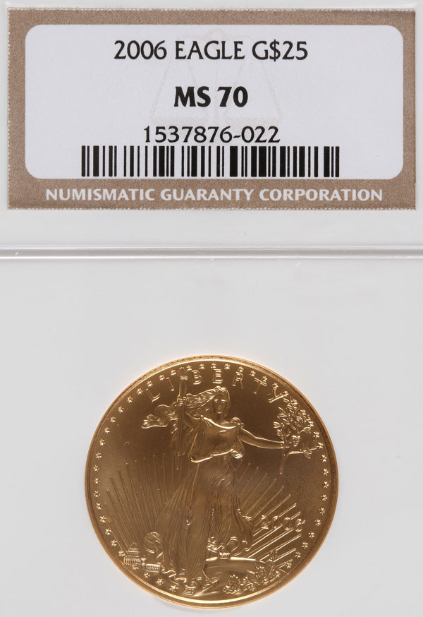 A 2006 AMERICAN GOLD EAGLE NGC MS70. $25 gold coin, .5 Troy oz.