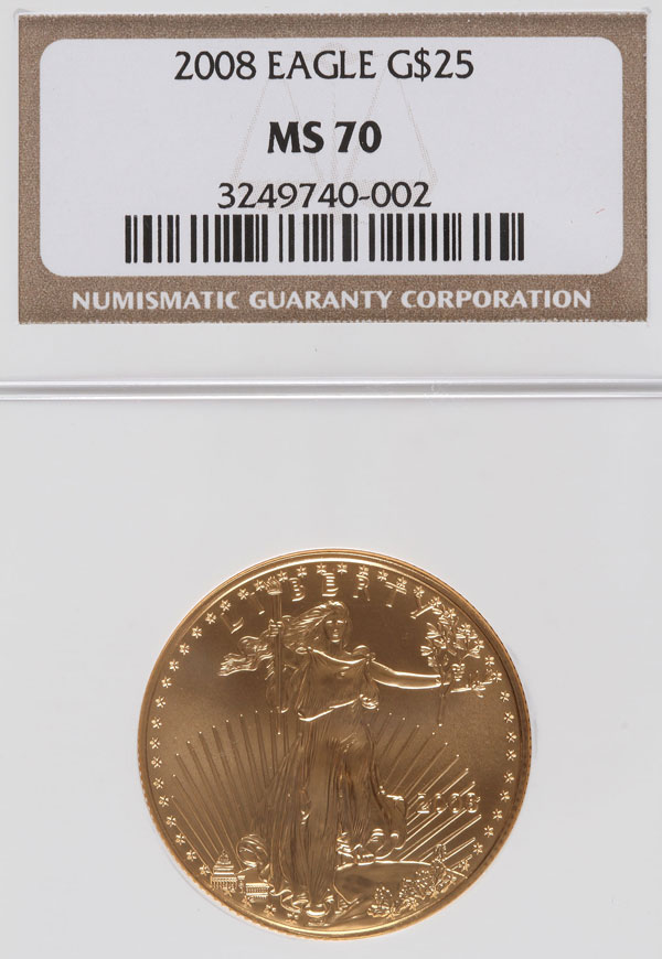 A 2008 AMERICAN GOLD EAGLE NGC MS70. $25 gold coin, .5 Troy oz.