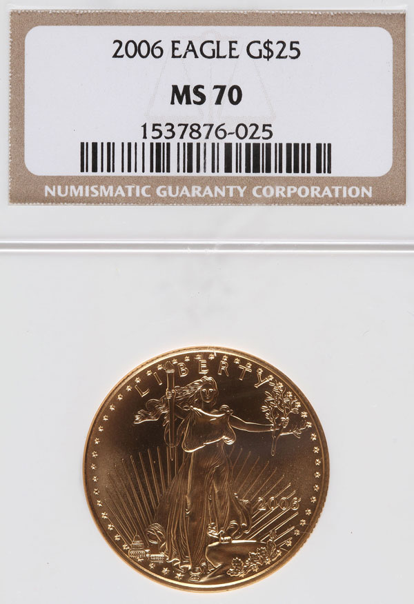 A 2006 AMERICAN GOLD EAGLE NGC MS70. $25 gold coin, .5 Troy oz.
