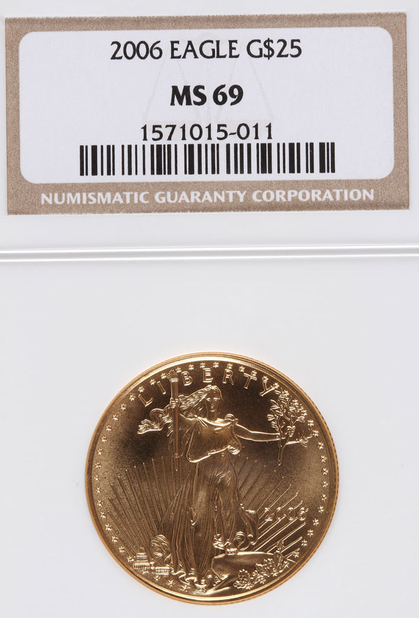 A 2006 AMERICAN GOLD EAGLE NGC MS69. $25 gold coin, .5 Troy oz.