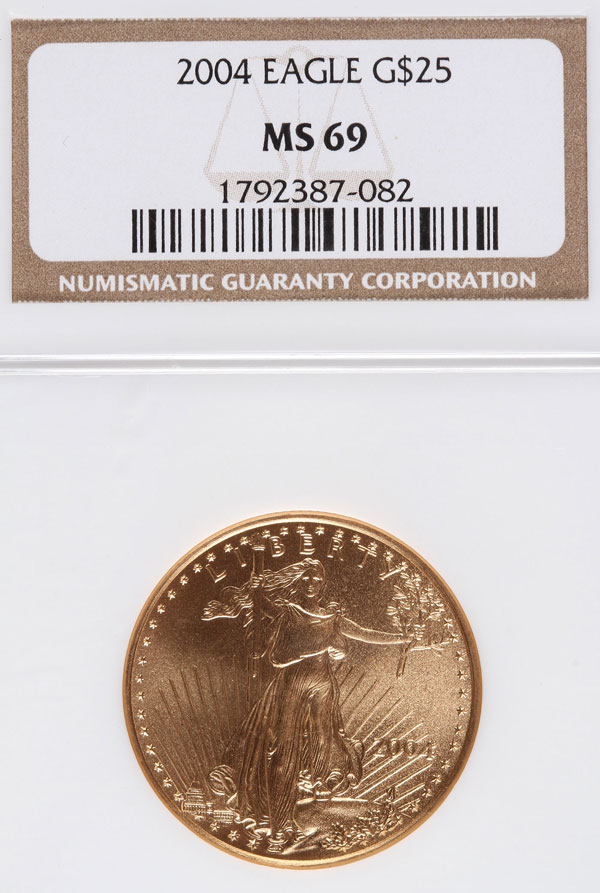 A 2004 AMERICAN GOLD EAGLE NGC MS69. $25 gold coin, .5 Troy oz.