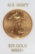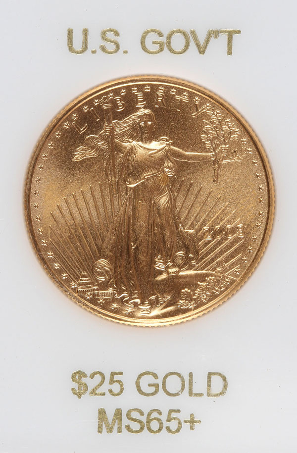 A 2003 AMERICAN GOLD EAGLE. $25 gold coin contained in a plastic case labeled MS65+, .5 Troy oz.