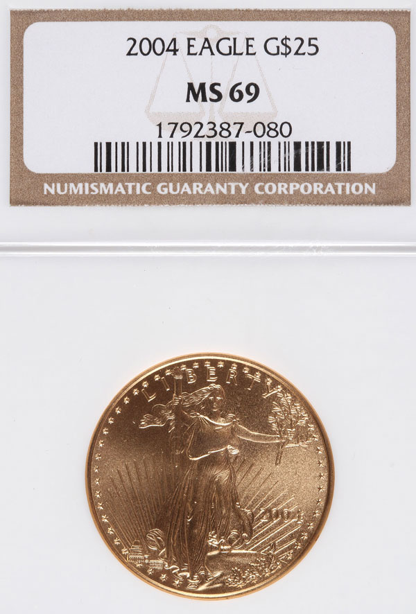 A 2004 AMERICAN GOLD EAGLE NGC MS69. $25 gold coin, .5 Troy oz.
