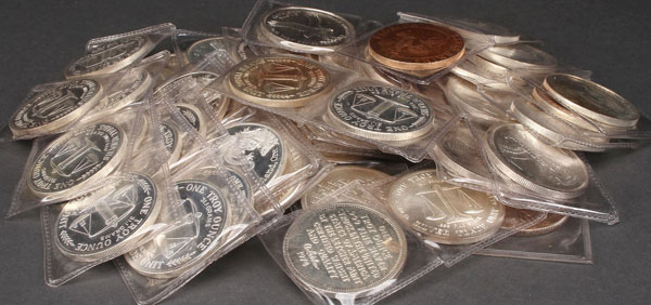 A GROUP OF 50 ONE OUNCE SILVER ROUNDS. With various designs for Florida and Portland, Oregon. 50 Troy oz. total.