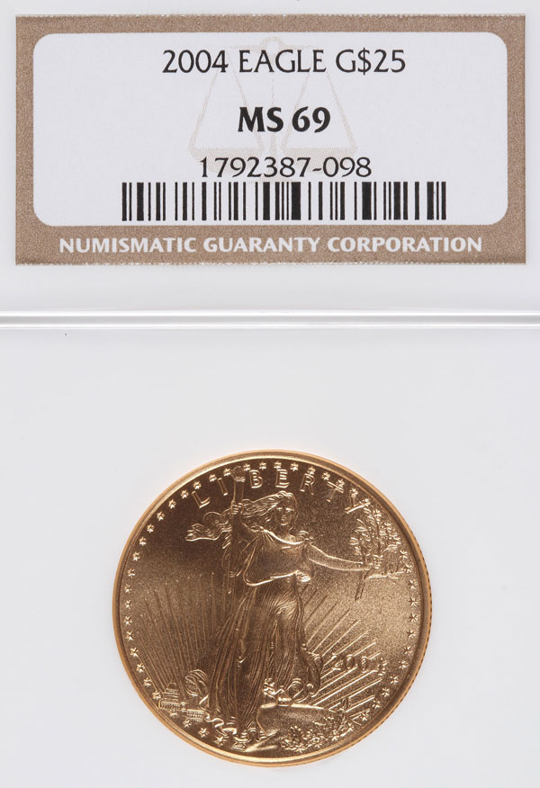 A 2004 AMERICAN GOLD EAGLE NGC MS69. $25 gold coin, .5 Troy oz.