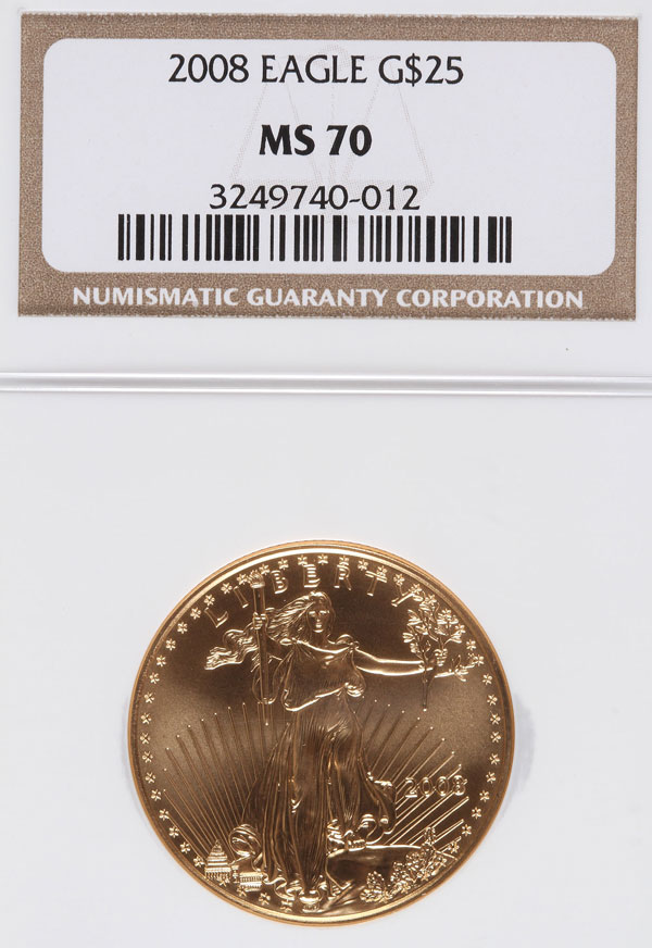 A 2008 AMERICAN GOLD EAGLE NGC MS70. $25 gold coin, .5 Troy oz.