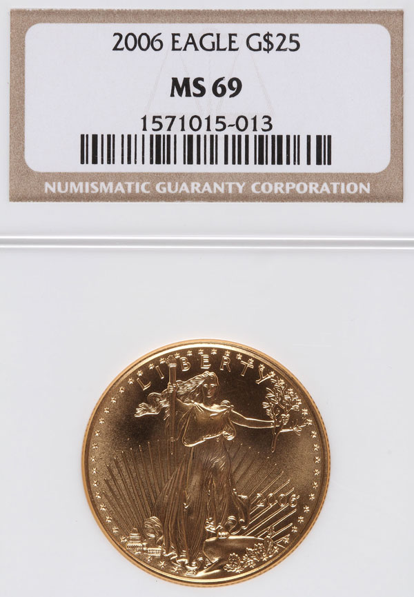 A 2006 AMERICAN GOLD EAGLE NGC MS69. $25 gold coin, .5 Troy oz.