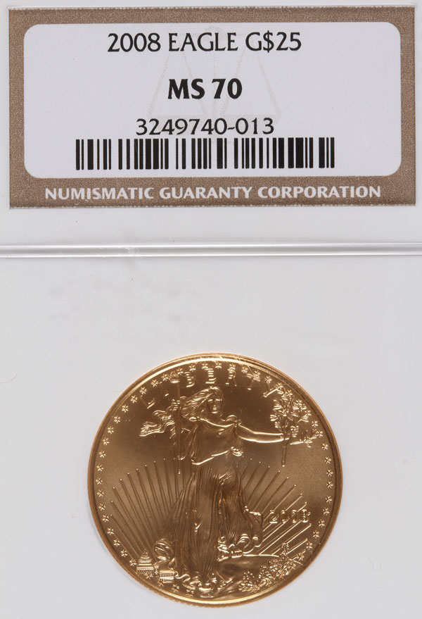 A 2008 AMERICAN GOLD EAGLE NGC MS70. $25 gold coin, .5 Troy oz.