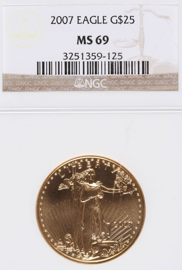 A 2007 AMERICAN GOLD EAGLE NGC MS69. $25 gold coin, .5 Troy oz.