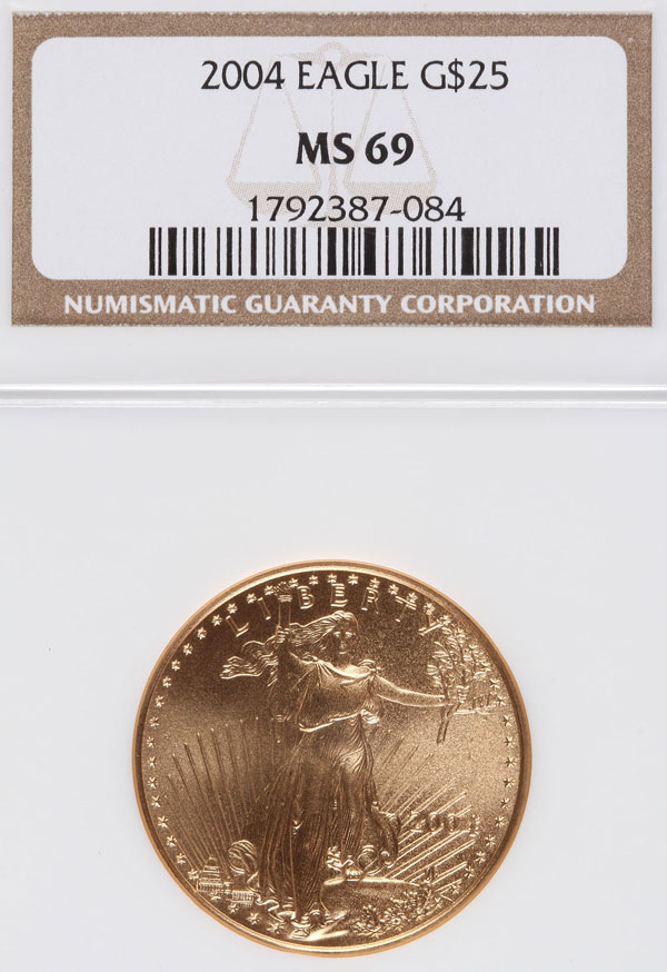 A 2004 AMERICAN GOLD EAGLE NGC MS69. $25 gold coin, .5 Troy oz.