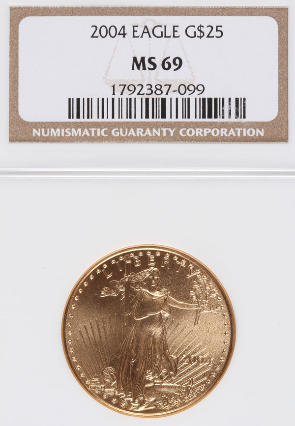 A 2004 AMERICAN GOLD EAGLE NGC MS69. $25 gold coin, .5 Troy oz.