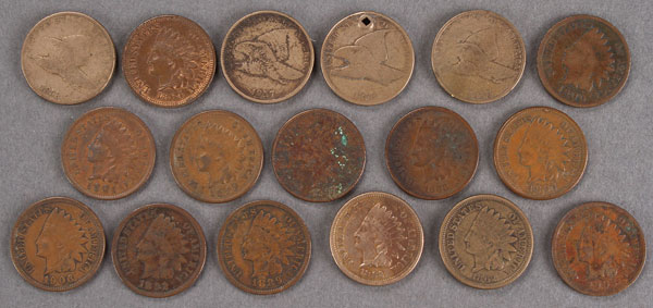 A GROUP OF 17 U.S. INDIAN CENTS. Including an 1864 AU or better.