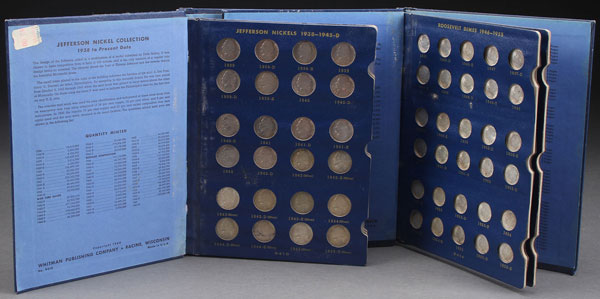 ROOSEVELT DIMES AND JEFFERSON NICKELS COLLECTION. Comprising a complete set of Roosevelt dimes 1946-1963, AU to BU with 62 and 63 proofs plus two extras, 48 coins total. And a complete set of Jefferson nickels 1938-1963, AU to BU with three extras, 108 coins total.