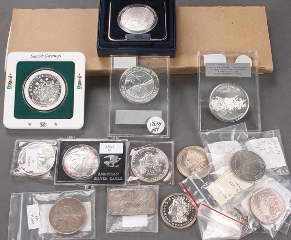 18 TROY OZ. SILVER MEDALLIONS. Comprising a 2007 Jamestown proof half, “Light Brigade” and “Dunkirk” medals, three silver eagles and others. Together with two “Statue of Liberty” commemorative halves (non-silver).