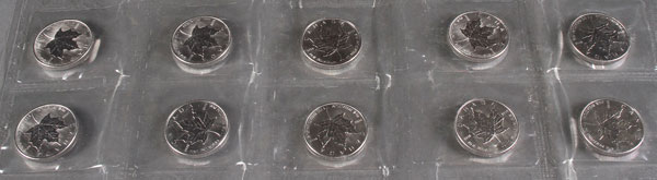 TEN CANADIAN PALLADIUM $50 COINS. Each 2006 1 Troy oz. palladium coin in original bubble pack.