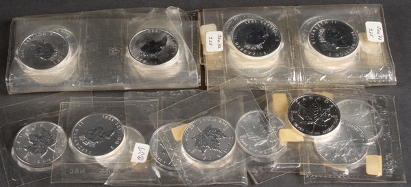 31 CANADIAN SILVER MAPLE LEAFS. Comprising 13 $5-1990, and 18 $5-1991.