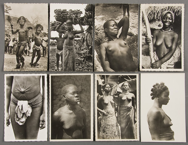103 AFRICAN CULTURE POSTCARDS early to mid 20th century. Mostly real photo with a large variety of female nudes, shaped coiffures and scarification. Most postally unused. Good to excellent condition.