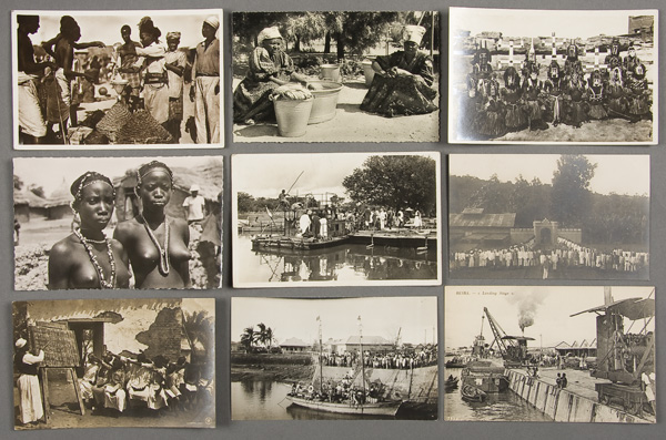 155 AFRICAN POST-PRIMITIVE POSTCARDS mid 20th century. Consisting of printed and real photo views of various regions. Depicting daily activities. All postally unused. Good to excellent condition.