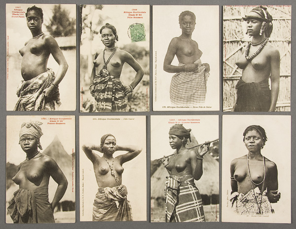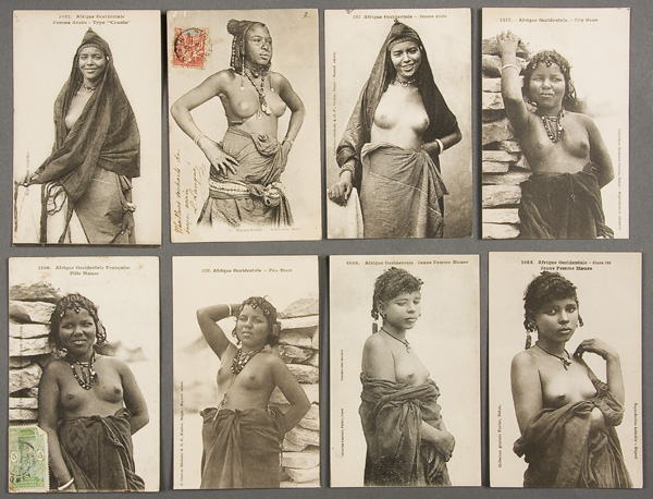 50 GENERAL FORTIER AFRIQUE OCCIDENTALE AFRICAN POSTCARDS early 20th century. All printed images of nude African women in a variety of poses and headdress. Most postally unused. Very good to excellent condition.