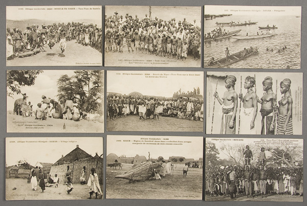 100 GENERAL FORTIER AFRIQUE OCCIDENTALE AFRICAN POSTCARDS early 20th century. All printed views depicting rural group scenes with some nudes, hunting parties and daily village activities. All postally unused. Very good to excellent condition.