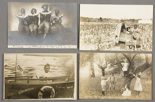 53 REAL PHOTO POSTCARDS early to mid 20th century. Commercial images including cotton pickers, watermelon eaters, Coney Island and other scenes. Most postally unused. Very good to excellent condition.
