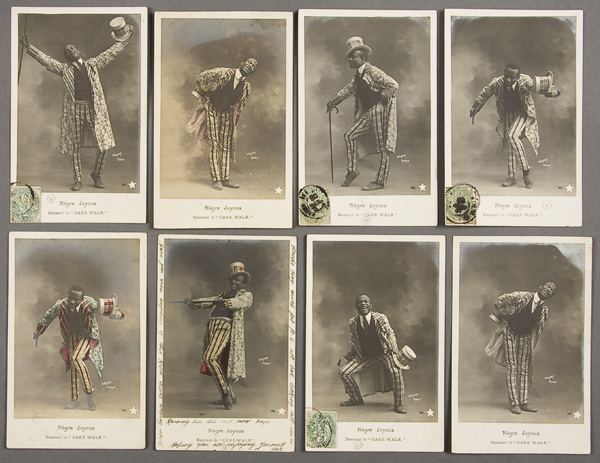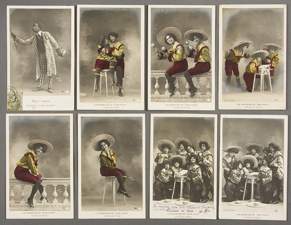 17 FRENCH CAKE WALK REAL PHOTO POSTCARDS early 20th century. All with black performers including Negre Joyeux and Les Danseuses by Walery, Paris. Some duplicates and hand colored images. Most postally used. Very good to excellent condition.