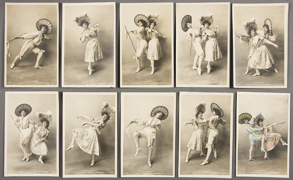 A 10-CARD FRENCH CAKE WALK REAL PHOTO POSTCARD SET early 20th century. Les Soeurs Peres. Depicting two women dancing. Together with an additional card from another series. All postally unused. Excellent to near mint condition.