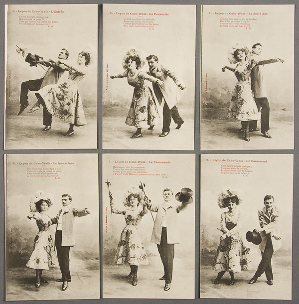 A 6-CARD FRENCH CAKE WALK POSTCARD SET early 20th century. Lecon De Cake-Walk. Printed images. All postally unused. Very good to excellent condition.