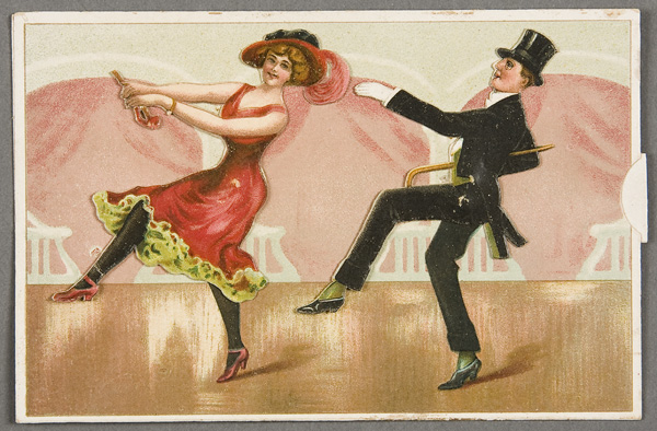 A CAKE WALK MECHANICAL POSTCARD early 20th century. Pull tab with animated dancers. Postally unused. Very good to excellent working condition.