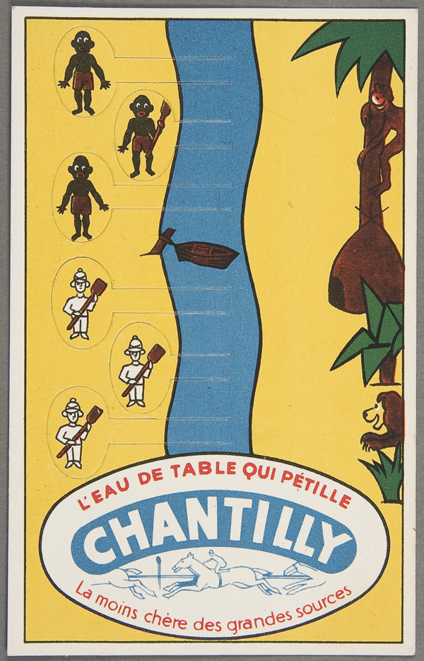 A FRENCH CHANTILLY NOVELTY ADVERTISING POSTCARD FOR WATER circa 1930's. With die-cut African scene pull-tab game system. Postally unused. Near mint to mint condition.