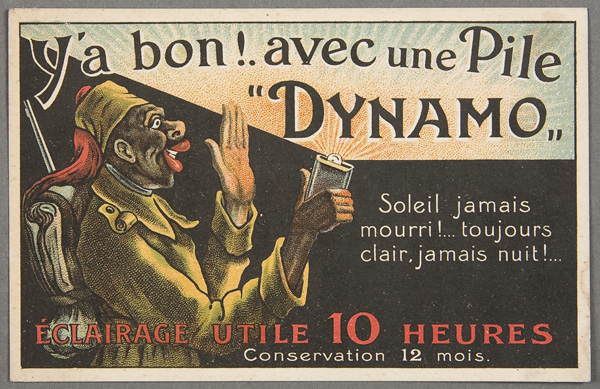 A FRENCH DYNAMO ADVERTISING POSTCARD early 20th century. With black soldier and flashlight. Postally unused. Excellent to near mint condition.