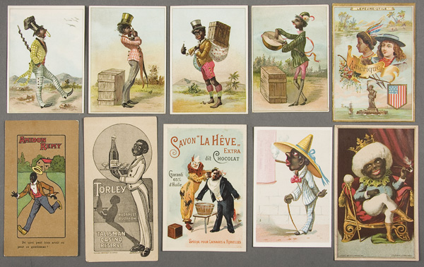 50 FOREIGN ADVERTISING TRADE CARDS circa 1900. English and French, all with fine color lithography with black related subjects or themes for a wide variety of products. Good to excellent condition.