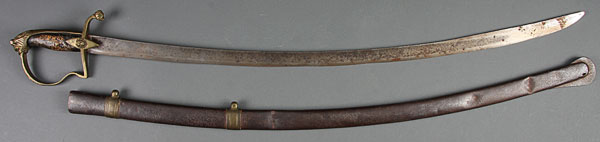 A GERMAN CALVARY SABER, MID-19TH CENTURY, with lion head pommel and acorn & oak leaf hand guard. Overall length 39.5 inches.