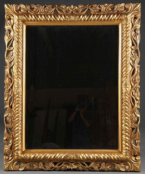 A CONTEMPORARY ITALIANATE CARVED AND GILT WOOD WALL MIRROR. 51 inches x 63 inches.