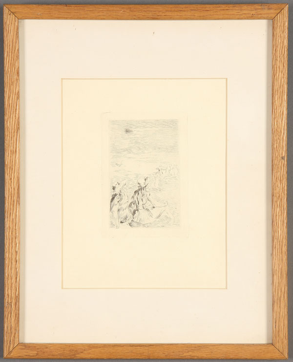 PIERRE AUGUSTE RENOIR (1841-1919), "Sur la Plage a Berneval" posthumous etching on paper. 3.75 inches x 5.25 inches (plate size).
