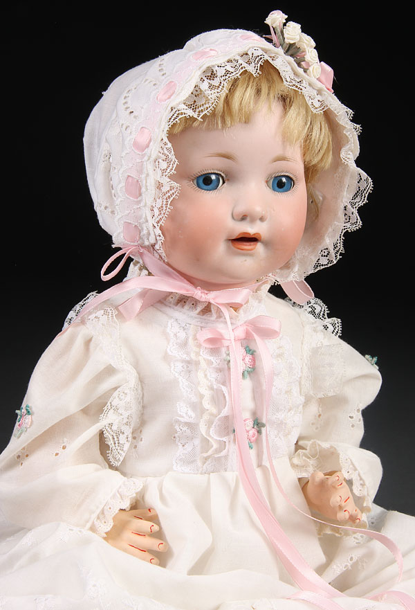 AN A&M BISQUE DOLL, #985, compo toddler body. Length 20 inches.