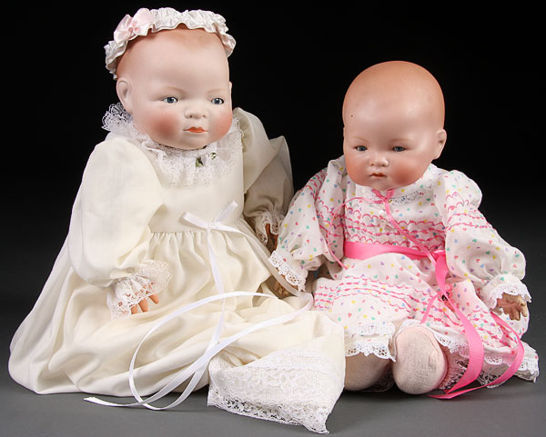 A GRACE PUTNAM BISQUE DOLL, height 17 inches. Together with A&M bisque doll, #341. Length 16 inches.