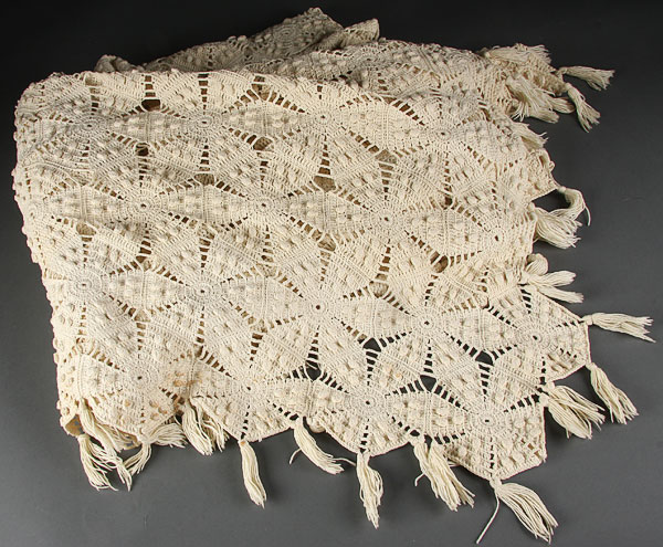 A GOOD CROCHETED BED SPREAD, EARLY 20TH CENTURY. With six pointed rosette design. 78 inches x 100 inches.