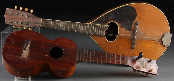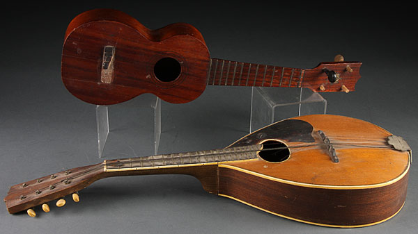 A WASHBURN MANDOLIN, CIRCA 1900. Together with a ukulele. Mandolin length 25 inches and ukulele length 20.5 inches.