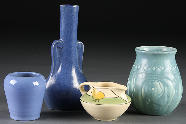 A FOUR-PIECE GROUP OF AMERICAN ART POTTERY, including Rookwood, Roseville Juvenile, U.N.D. and Rushmore.