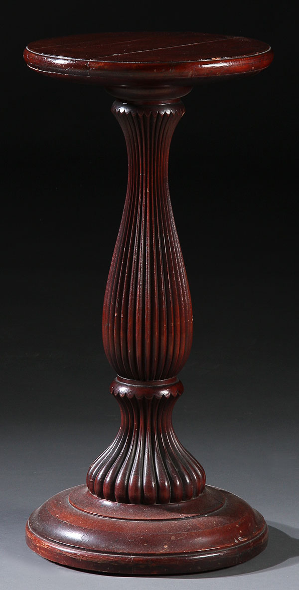 A VICTORIAN MAHOGANY PEDESTAL, with fluted baluster support. Height 24.5 inches.