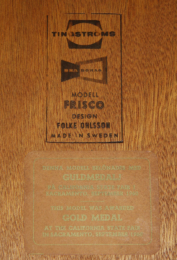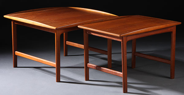 A SET OF THREE FOLKE OHLSSON FOR TINGSTROMS FRISCO MODEL SWEDISH MODERN LAMP TABLES, CIRCA 1960. With stamped labels and California State Fair gold medal award paper label for 1960. Two with height 20 inches, width 30 inches, depth 22 inches, and one with height 21 inches, width 31.5 inches, depth 32 inches.
