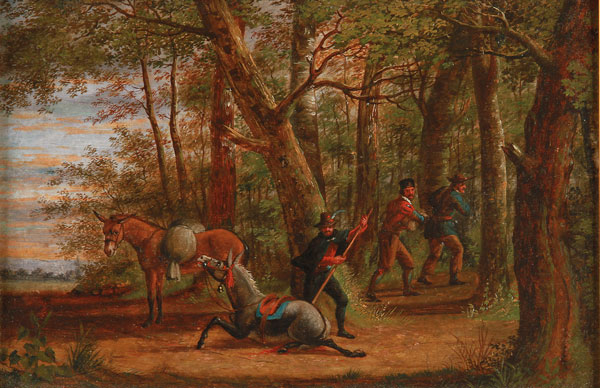 Figures in a Wooded Landscape with a Stubborn Mule- circa 1850
