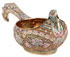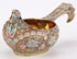 A FINE RUSSIAN SILVER-GILT AND SHADED ENAMEL KOVSH, 11TH ARTEL. The body and hooked handle overall enameled with colorful scrolling foliage and florals in the Pan-Slavic taste on a stippled gilt ground with silver beading and rope-twist rim, the interior brightly gilded. Hallmarked Moscow 1908-1917, maker's mark of the 11th Artel (11A), and 84 silver standard. Length 7.3 inches (19 cm).