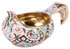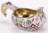 A RUSSIAN SILVER-GILT AND SHADED ENAMEL KOVSH, MARIA SEMENOVA, MOSCOW, CIRCA 1908-1917. Of traditional form, with hook handle and raised prow, the sides and handle enameled in geometric motifs and foliate sprays in various colors on rose and pale blue colored ground. The handle of conforming design on a pale blue and rose ground, and the sides with white beaded enameling. Hallmarked Moscow 1908-1917, with Cyrillic maker's mark MS for Maria Semenova and 84 silver standard. Length 4.75 inches (12.2 cm).
