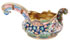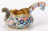 A RUSSIAN SILVER-GILT AND SHADED ENAMEL KOVSH, 20TH ARTEL, MOSCOW, CIRCA 1908-1917. The bulbous form with flared and semi-scalloped upper edge enameled in multi-colored Art Nouveau geometric, floral and foliate designs on an opaque ground of various colors. The arching handle with flat gilded top and the sides with wave-like designs in blue and pale pink. Hallmarked Moscow circa 1908-1917, maker's marks of the 20th Artel, and 84 silver standard. Length 4 inches (10.5 cm).
