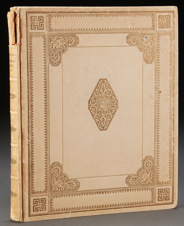 ALEXANDER BENOIS ILLUSTRATED COPY OF PUSHKIN’S QUEEN OF SPADES, GOLIKE AND VILBORG, ST. PETERSBURG, 1911. Illustrated in color by Alexander Nikolaevich Benois (1870-1960) comprising 68 pages, measuring 12 inches x 10 inches (30 x 24 cm). Publishers gilt impressed cream colored boards. Condition: Top of spine with some losses and hinges cracked, corners of boards bumped and some even toning, the interior clean, bright and tight.