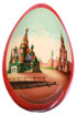 A LARGE RUSSIAN PAPIER-MÂCHÉ AND LACQUER EASTER EGG, LUKHUTIN, 1879. The front painted in the western style depicting the Resurrection of Christ with luster pigments on a red field. The verso painted with an image of Saint Basil’s Cathedral Moscow and with the Kremlin Clock tower in the distance. The interior gilded, marked Lukhutin beneath the Imperial Warrant and also inscribed From the St. Petersburg Old Rite Receiving Priesthood 1879. Height 6.25 inches (16 cm).